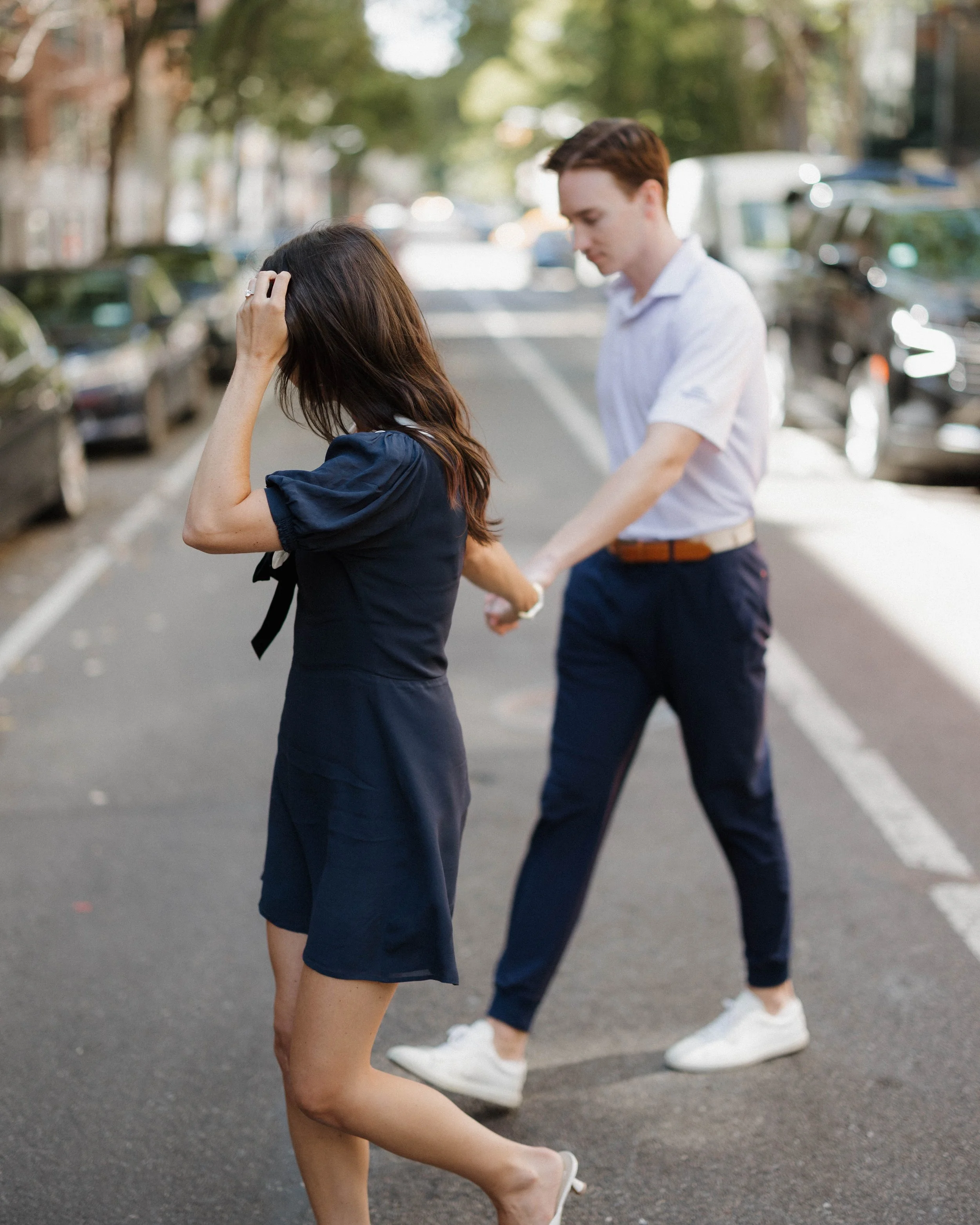 A few months later, they had an engagement shoot around New York City, New York at sentimental locations in preparation for their wedding, including stops at their first date location and first apartment.